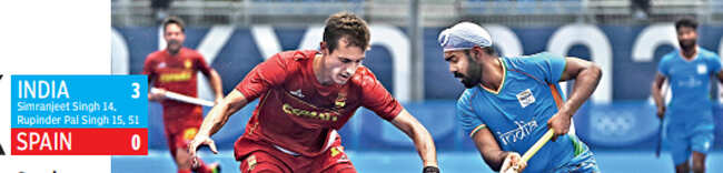 Battered and bruised by a 1-7 mauling by Australia on Sunday evening, Manpreet Singh’s men regrouped at the Oi hockey stadium in Tokyo to blank Spain 3-0 and vault to the second spot behind Australia on the points table in Group A. With the top four from the group making the knockouts, the win boosted India’s chances.