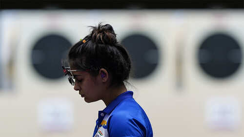 <p>Manu Bhaker competes in the women's 25m pistol rapid qualification event at the Asaka Shooting Range in Tokyo Olympics. Manu fails to qualify for the final. (AP Photo)</p>4/10:Sable fails to qualify for final