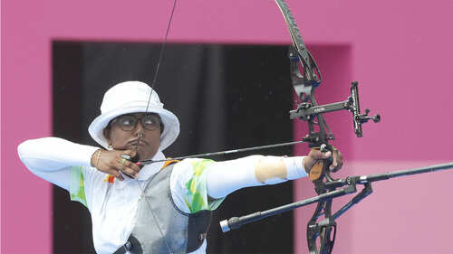 <p>Deepika Kumari competes during the women's individual 1/8 eliminations round of the archery event at the Tokyo Olympics. Deepika loses 0-6 Korean's An San in the quarters. (PTI Photo)</p>6/10:Simranjit loses in Round of 16
