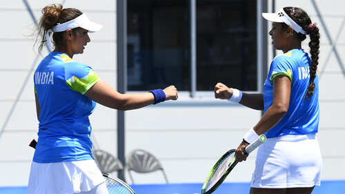 <p>Ankita Raina and Sania Mirza react during their women's doubles first round match against Ukraine's Lyudmyla Kichenok and Nadiia Kichenok at the Tokyo Olympics. (Reuters Photo)</p>8/10:Mixed day for Nethra