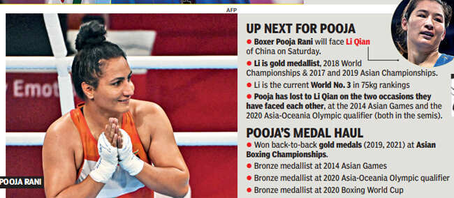 In her debut Olympic Games bout, Pooja was calm and self-assured. Next up is a somewhat familiar foe in China’s Li Qian, a gold medallist at the 2018 World Championships and bronze winner at the Rio Olympics. She is the current world No. 3 and has defeated Pooja twice in as many meetings.
