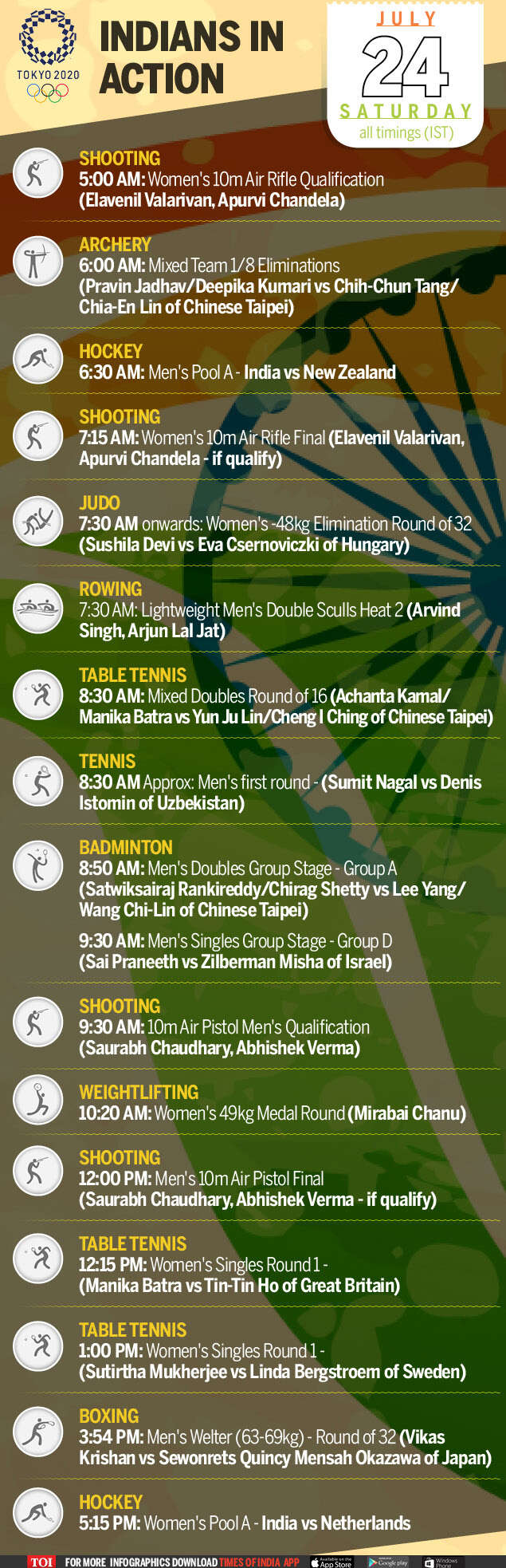 That will be followed by the men's 10m air pistol qualification and the final with Saurabh Chaudhary and Abhishek Verma in action.