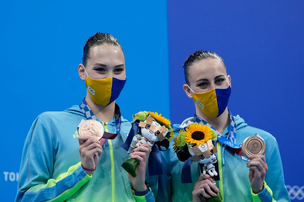 Russian athletes Svetlana Romashina and Svetlana Kolesnichenko won the artistic swimming duet competition on Wednesday. The Ukrainian duo of Marta Fiedina and Anastasiya Savchuk took bronze but were announced on the podium as representing ROC, the acronym for the Russian Olympic Committee.