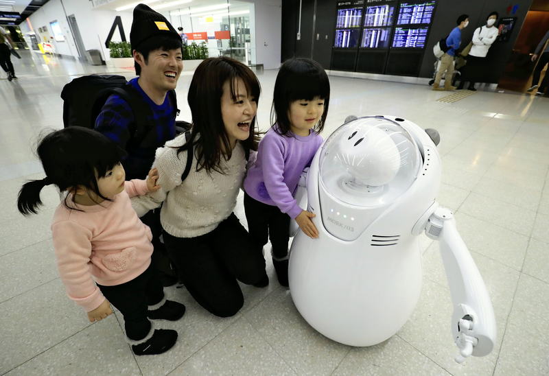 An 80-centimeter-tall robot was seen one day running around the international terminal of Haneda Airport, a gateway to Japan, uttering these phrases using its electronic voicebox. As the robot held out its hand, a foreign traveler widened his eyes in surprise.