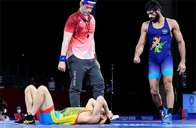 Ravi had hit the mats in Tokyo with a bang and crushed Colombia's Oscar Eduardo Tigreros Urbano 13-2 (victory by technical superiority) to cruise into the quarterfinals. The Indian wrestler didn't give his quarterfinal opponent, Bulgaria's Valentinov Georgi Vangelov much of a chance either and wrapped up the bout by registering a 14-4 (victory by technical superiority) to enter the semis.