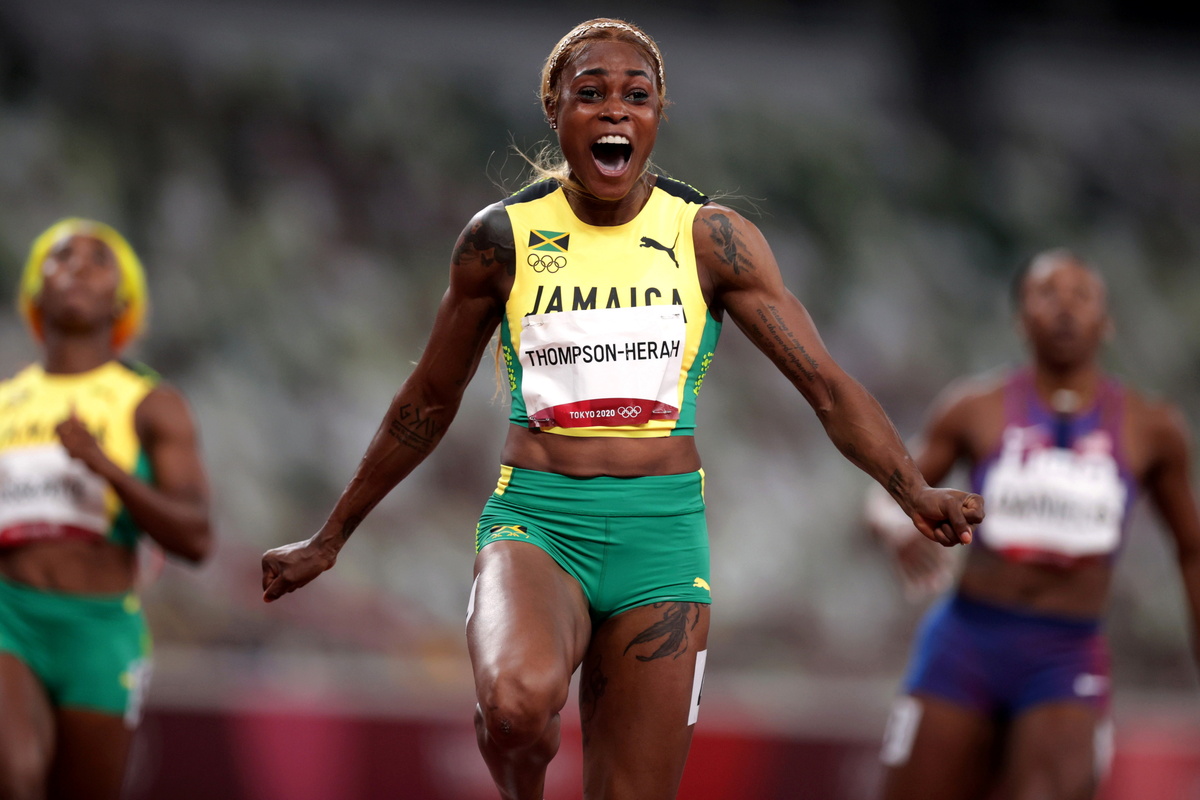 Elaine Thompson-Herah, 29, earned the moniker fastest woman alive when she clocked a lightning quick 10.61 seconds, beating Florence Griffith-Joyner's Olympic record from 1988. Shelly-Ann Fraser-Pryce took silver in 10.74 with Shericka Jackson third in 10.76.