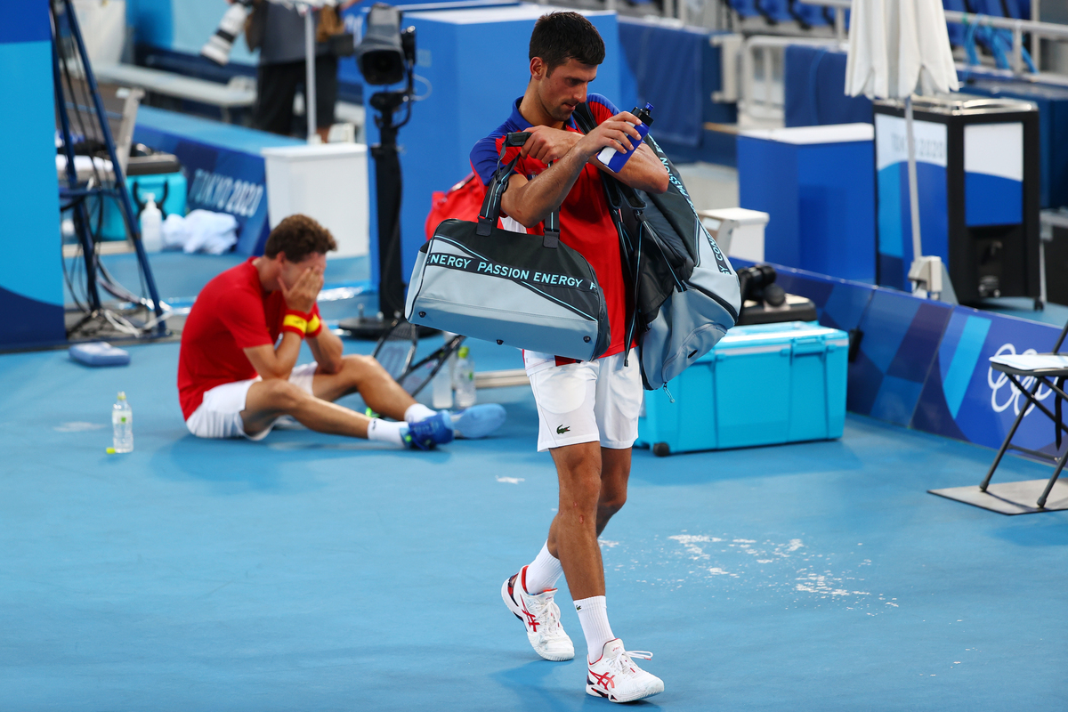World number one Novak Djokovic will leave the Olympics without a after he lost the tennis bronze medal match to Spain's Pablo Carreno Busta and then pulled out of the mixed doubles with a shoulder injury.