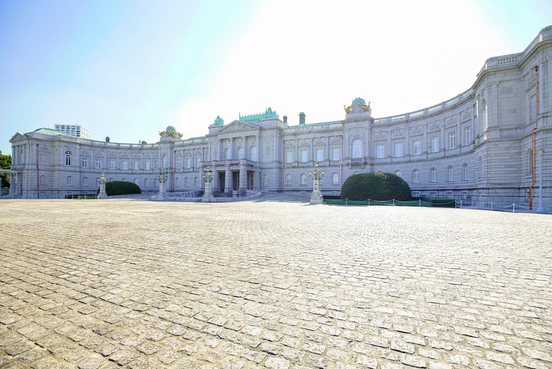 The building in the Neo-Baroque architectural style is a Western-style palace completed in 1909. Architect Tokuma Katayama took command of the construction. In 2009, the main building and some other parts of the palace were designated as national treasures. Since 2016, the palace accepts general public visitors throughout the year.