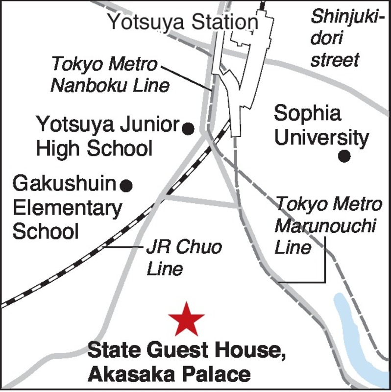The State Guest House, known as the Akasaka Palace, in Minato Ward, Tokyo, is a Western-style palace that was initially built as the crown prince's residence by gathering all the available skills of architects and craftsmen of artistic handicrafts in the Meiji era (1868-1912).