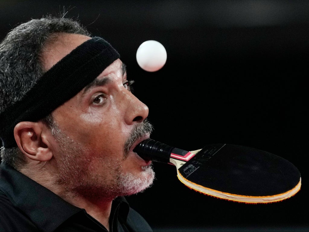 But one of the most extraordinary and inspirational performances seen in Japan so far has been that of Egyptian table tennis star Ibrahim Hamadtou, 48, who has no arms so plays his sport with a paddle clamped between his teeth, deftly chipping the ball into the air with his foot to serve.