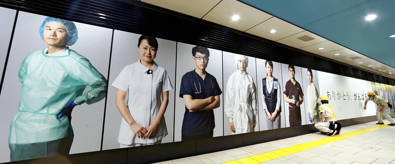 Tokyo Metro's Omotesando Station in Minato Ward, Tokyo established Monday a photo display honoring medical workers at the forefront of the efforts to treat the novel coronavirus. The display, which can be seen until June 21, was organized by photographer Miyamoto Naotaka, 59, and is intended to as both an act of gratitude toward medical workers and a bit of encouragement to all who see the photos.