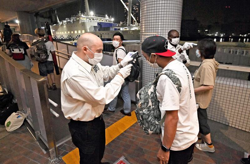 Ferry and flight companies are collaborating with the villages as well. Tokai Kisen Co., which operates ferries from the Takeshiba pier in Tokyo and other wharfs, has reduced the maximum number of passengers on board to about 70% to avoid crowding. The company also checks passengers' temperature before they board. Shinshinkisen Co., which runs ferry services from Shimoda Port in Shizuoka Prefecture, has halved its number of passengers.