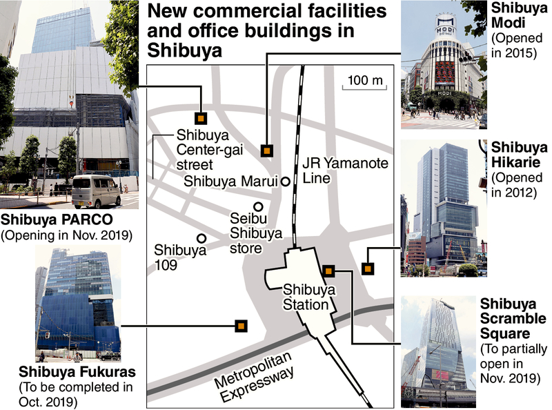 In October, the "Shibuya Fukuras," which will house the Tokyu Plaza Shibuya commercial complex, will be completed. The 47-story "Shibuya Scramble Square" megacomplex will likewise open in November.