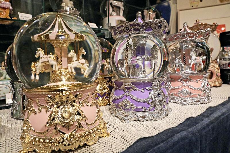 Other types of snow globes on display at the museum include one with a model of the Statue of Liberty in it and another that resembles a birdcage. Prices range from about 1,500 yen to about 70,000 yen.
