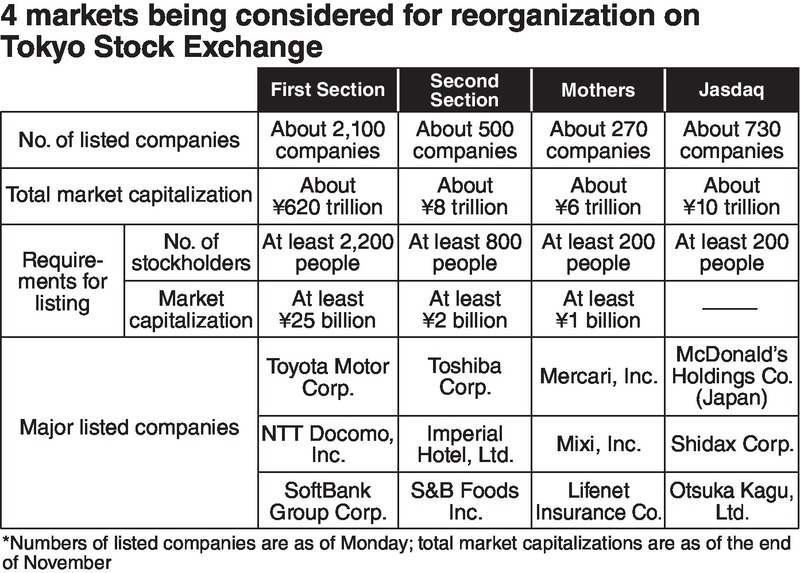 "There will be more money from investors if the market divisions become easily understandable to foreign stockholders as well," said Sadakazu Osaki, a fellow at Nomura Research Institute, Ltd. who is well versed in capital markets. "If the exchange becomes easily understandable overseas, it will lead to the exchange's winning out in international competition."