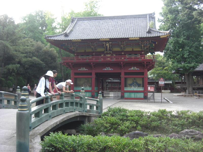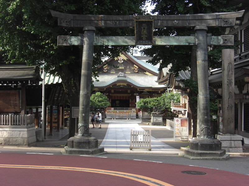 You will soon find Yushima Tenmangu Shrine. It enshrines Sugawara no Michizane, a ninth-century scholar and government official who became deified as the god of learning.