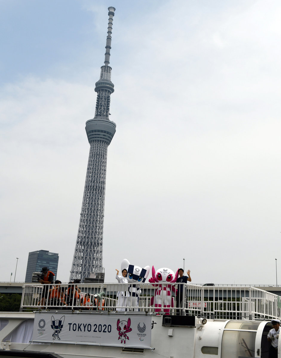 After the ceremony, the mascots reappeared on a boat that cruised down the Sumida river, waving to children on the riverbank as they passed some of Tokyo's most iconic landmarks.