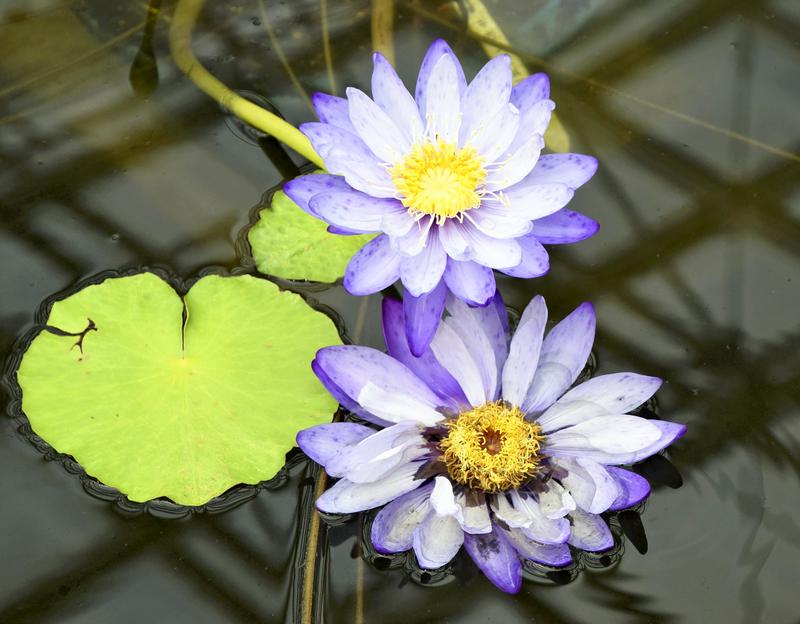 Blooming flowers bursting with color were brightening up the tropical water lily room. Among them was the shokudai-o-konnyaku, or the amorphophallus titanum, which is not a water lily, obviously. Also called the corpse flower, the Sumatra-native plant bears one of the world's largest flowers only once every few years. As the Jindai Botanical Gardens' corpse flowers had bloomed in July last year, the plant was in the process of storing up nutrition in one leaf over the next several years to blossom once again.