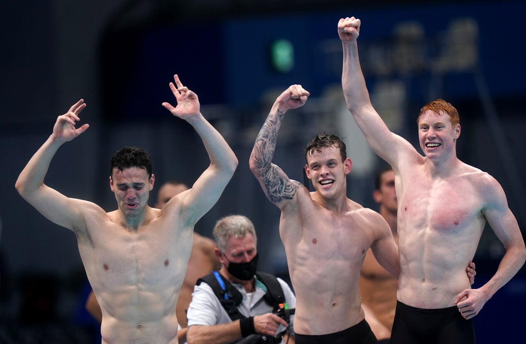 Alongside Dean was Duncan Scott who claimed silver in Tuesday’s individual race, James Guy and Matthew Richards, and their time of six minutes and 58.58 seconds saw them bag Team GB’s third swimming gold of Tokyo 2020.