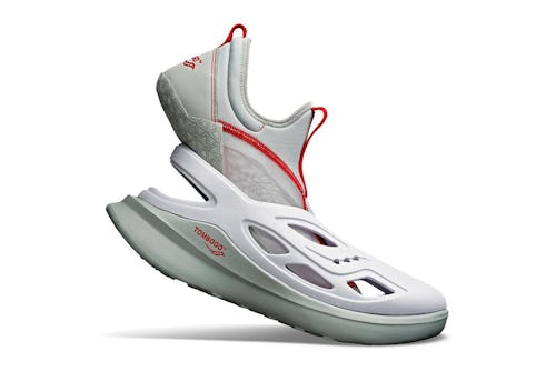 The shoe’s bold design can be attributed more to its silhouette than its color palette. Detailing is kept to a minimum through accents of red on the inner bootie, and matching branding appears on the heel, midsole, and insoles. Because Crocs and Yeezy have already paved the way for experimental footwear silhouettes, the Tombogo x Saucony mashup doesn’t feel as silly as it probably would have a couple of years ago.