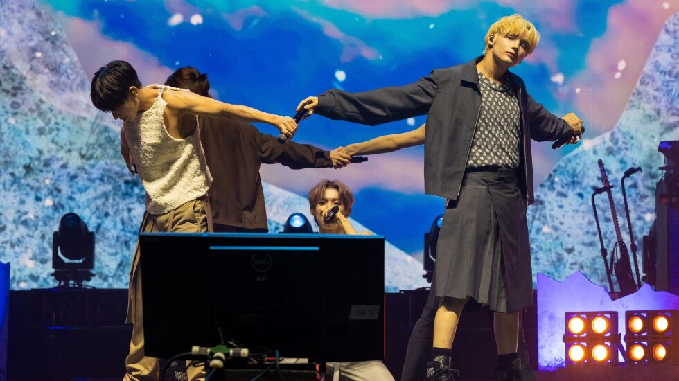 Tomorrow x Together made history at the festival again Saturday as the first South Korean boy band to headline the event (following BTS member J-Hope, who was the first South Korean artist to headline in 2022, and NewJeans, who played Thursday, notable for being the first Korean girl group to play the festival).