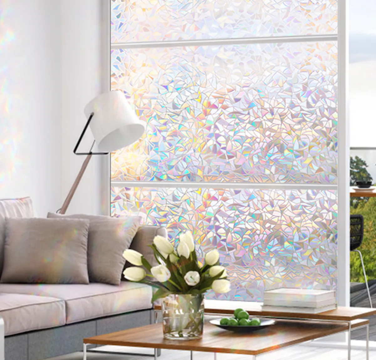 Privacy film that looks like rainbow stained glass