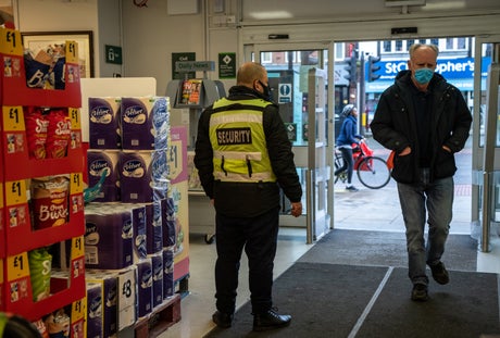In a statement on Monday, chief executive Simon Roberts said Sainsbury’s had put trained security guards at the front of stores to challenge anyone not wearing a mask. “The vast majority of customers are shopping safely,” he said, “but I have seen some customers trying to shop without a mask and shopping in larger family groups.”