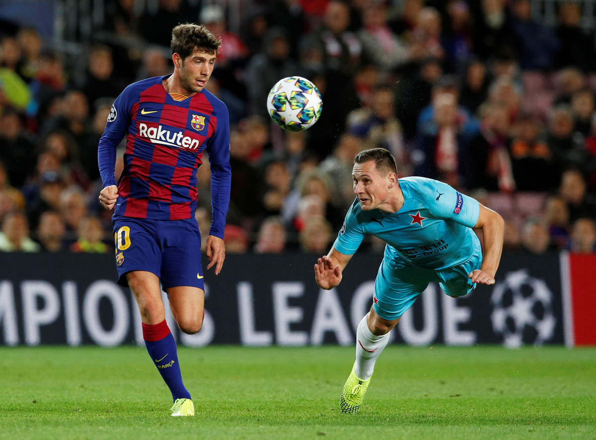 Barca lead the group on eight points after four games, while Slavia are bottom with two.