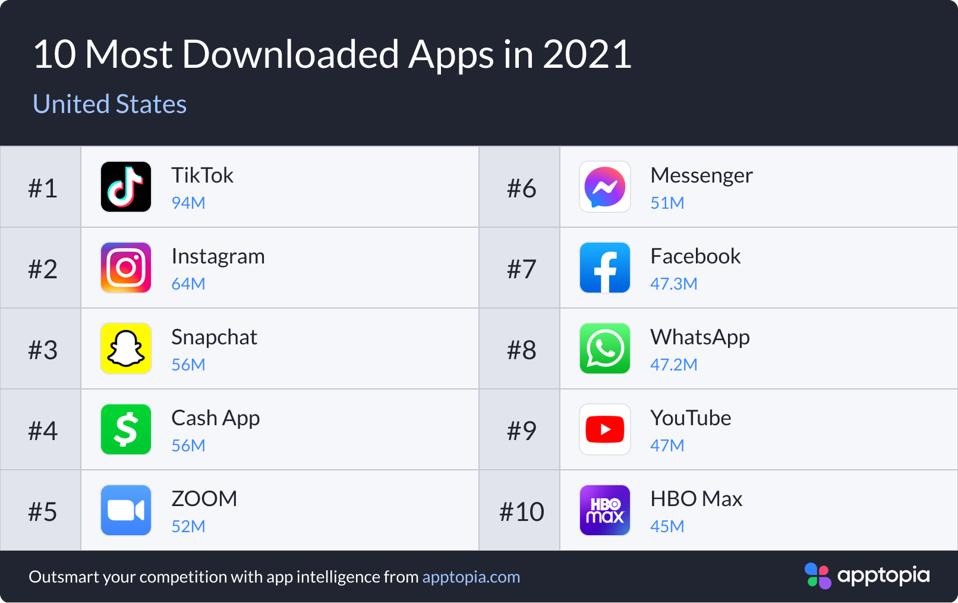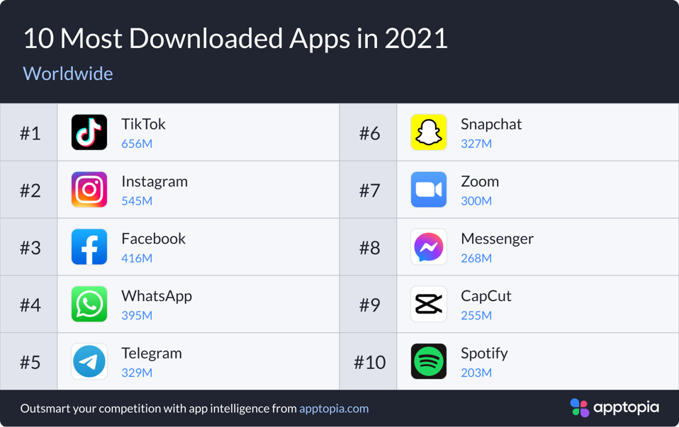 Here are the top 10 globally most-download apps of 2021: