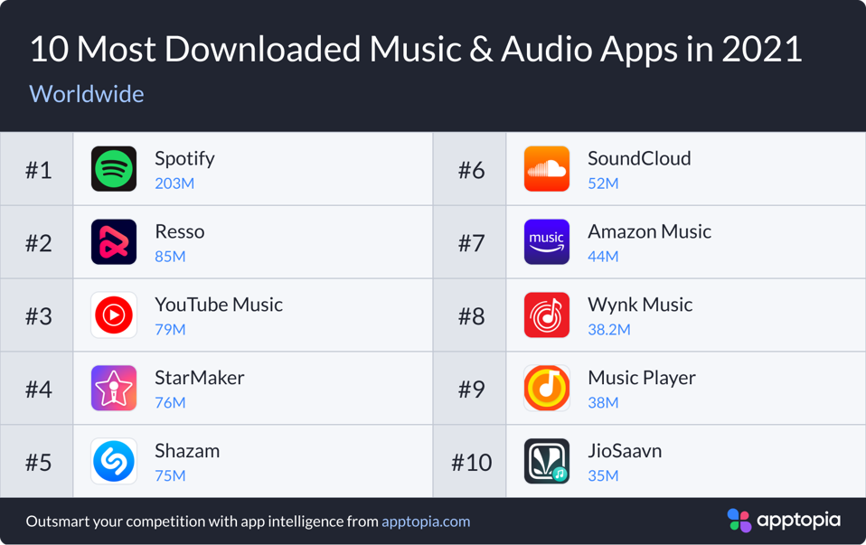 Top 10 most-downloaded music and audio apps for 2021: