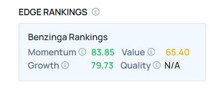 - Edge Stock Ratings: 83.85 Momentum score with Value at 65.40.