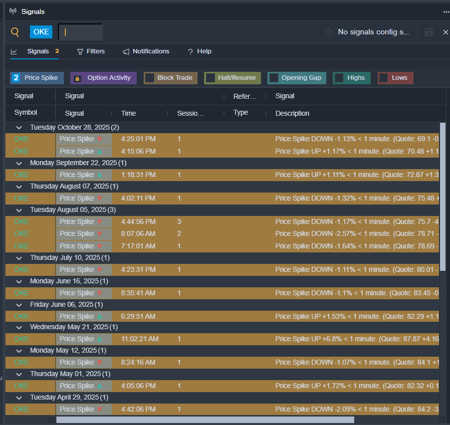 - Benzinga Pro’s signals feature notified of a potential breakout in OKE shares.