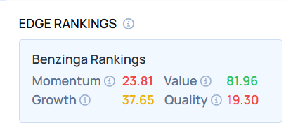 - Edge Stock Ratings: 23.81 Momentum score with Value at 81.96.
