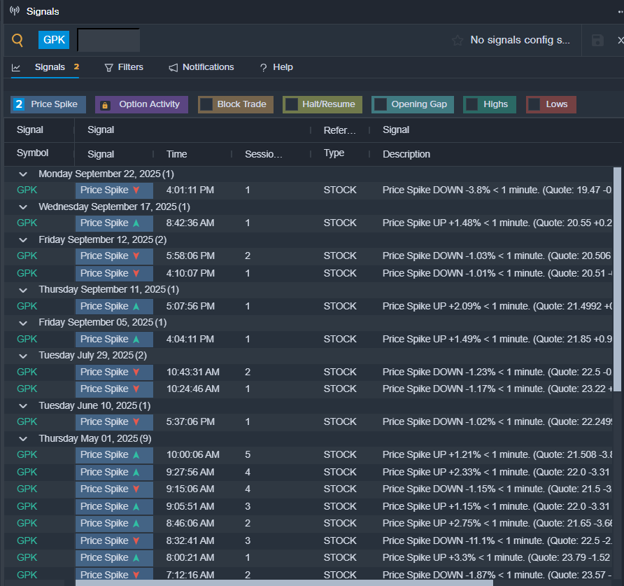 - Benzinga Pro’s signals feature notified of a potential breakout in GPK shares.