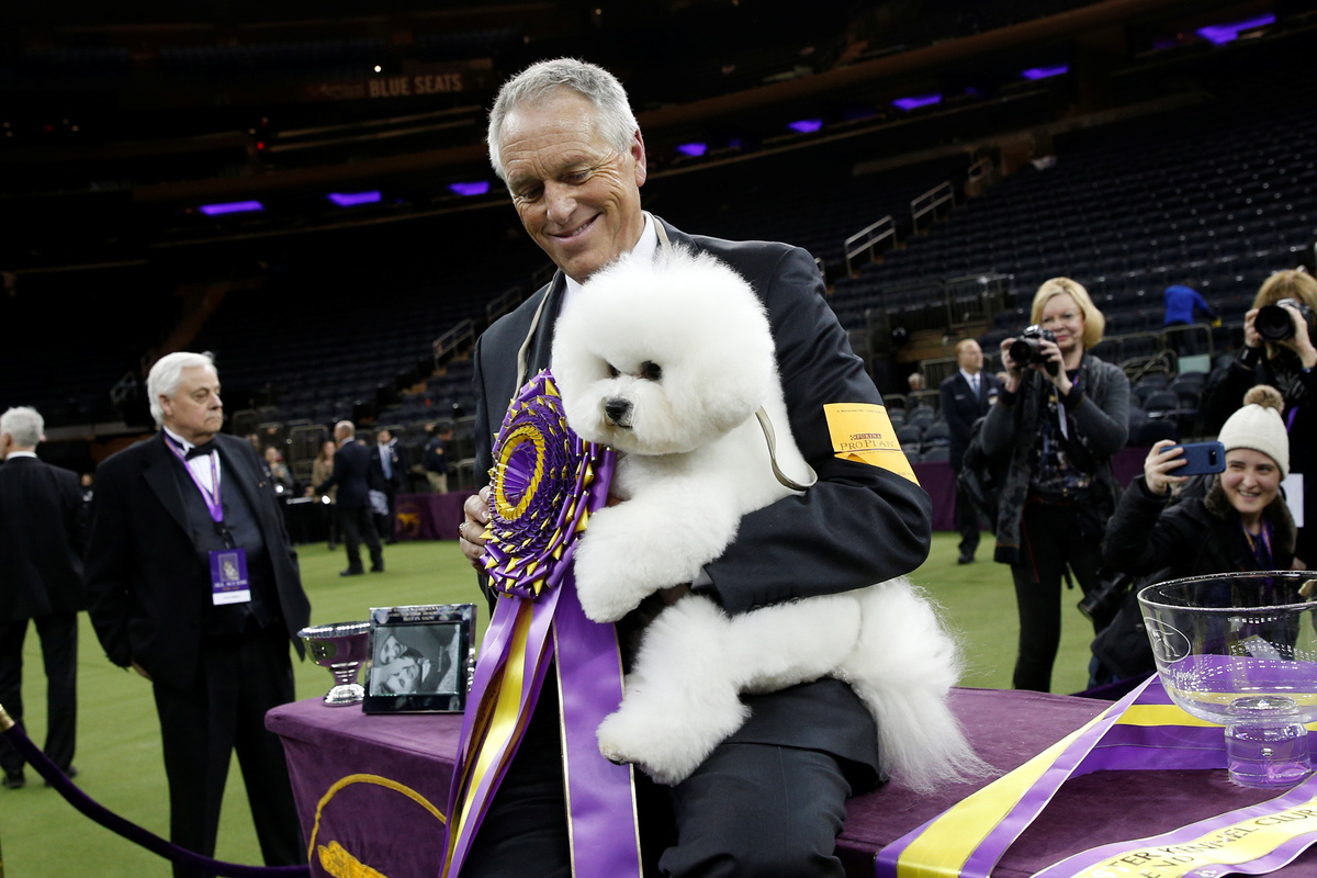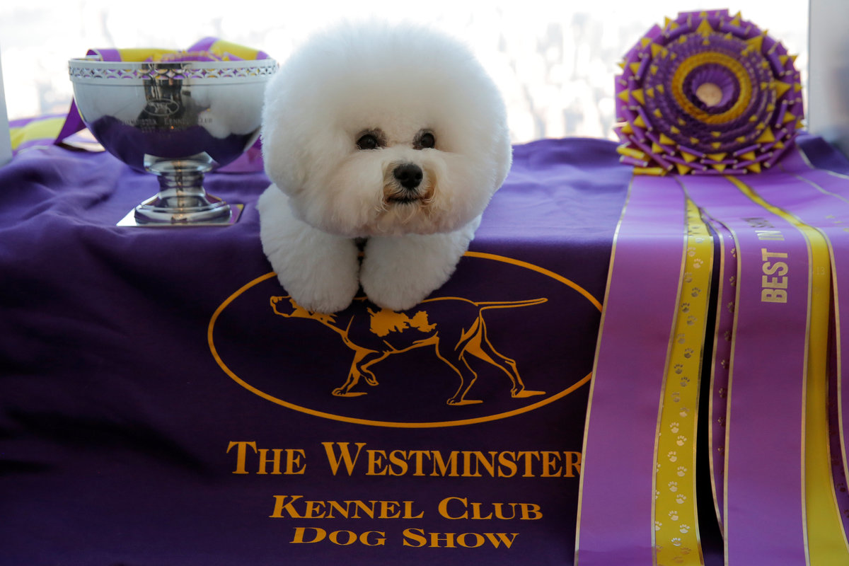 REUTERS/Brendan McDermidFlynn, a bichon frise and winner of Best In Show at the 142nd Westminster Kennel Club Dog Show, is groomed by handler Bill McFadden at the Top of the Rock in New York, U.S., February 14, 2018. REUTERS/Lucas JacksonFlynn, a bichon frise walks after winning the nonsporting group during judging at the 142nd Westminster Kennel Club Dog Show in New York, U.S., February 12, 2018. REUTERS/Brendan McDermidFlynn, a bichon frise walks during judging of the nonsporting group at the 142nd Westminster Kennel Club Dog Show in New York, U.S., February 12, 2018. REUTERS/Brendan McDermidFlynn, a bichon frise walks during judging of the nonsporting group at the 142nd Westminster Kennel Club Dog Show in New York, U.S., February 12, 2018. REUTERS/Brendan McDermidSlick, a border Collie walks during judging of the herding group at the 142nd Westminster Kennel Club Dog Show in New York, U.S., February 12, 2018. REUTERS/Brendan McDermidLucy, a Borzoi walks with her handler after winning best in Hound group during judging at the 142nd Westminster Kennel Club Dog Show in New York, U.S., February 12, 2018. REUTERS/Brendan McDermidAudience members watch dogs compete in the Masters Agility Championship. REUTERS/Caitlin OchsBiggie, a pug walks during judging for best in Toy Group at the 142nd Westminster Kennel Club Dog Show in New York, U.S., February 12, 2018. REUTERS/Brendan McDermidJambo, a Briard breed, is groomed in the benching area on Day One of competition at the Westminster Kennel Club 142nd Annual Dog Show in New York, U.S., February 12, 2018. REUTERS/Shannon Stapleton