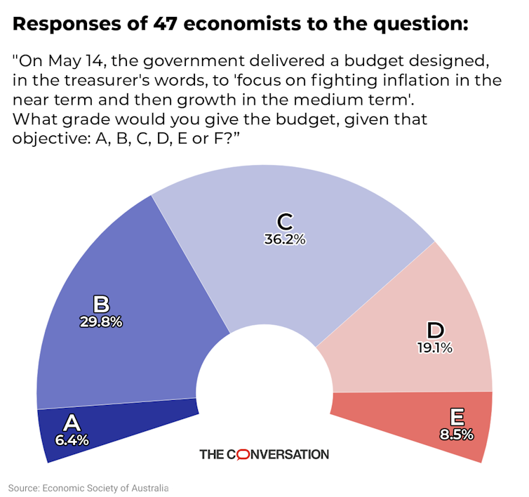 Asked to grade Treasurer Jim Chalmers’ third budget on his own criteria of delivering on “inflation in the near term and then growth in the medium term”, most of the 49 leading economists surveyed by the Economic Society of Australia and The Conversation have failed to give it top marks.