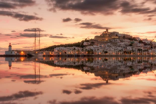 Ibiza has more than 100 miles of coastline and around 50 beaches to choose from. The old town is a Unesco heritage site. Ibiza is known for its nightlife.