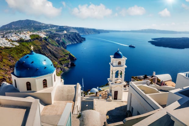 The pictures say it all—Santorini is the beautiful Greek island with whitewashed buildings and blue domes that match the azure waters of the Aegean Sea. Much of its landscape is formed by a volcanic eruption about 3,600 years ago. Water from the Aegean Sea rushed in, filling the void and forming what is now the 7.5-mile lagoon.