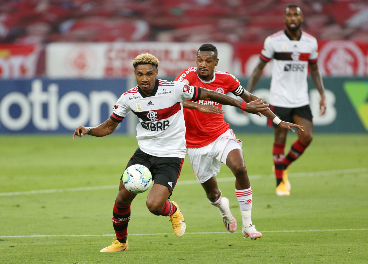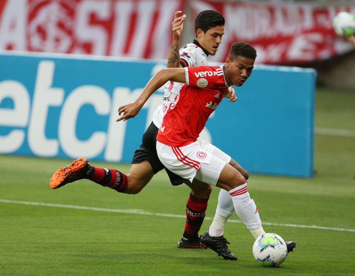 Soccer Football - Brasileiro Championship - Internacional v Flamengo - Beira Rio Stadium, Porto Alegre, Brazil - October 25, 2020 Internacional's Ze Gabriel in action with Flamengo's Pedro REUTERS/Edison Vara