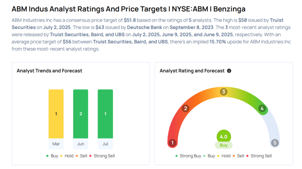 Analysts expect the New York-based company to report quarterly earnings at 95 cents per share, up from 94 cents per share in the year-ago period. ABM is expected to report quarterly revenue of $2.15 billion, compared to $2.09 billion a year earlier, according to data from Benzinga Pro.