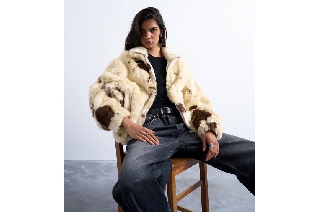 Topshop pony skin cream faux fur bomber: £90, Topshop.com