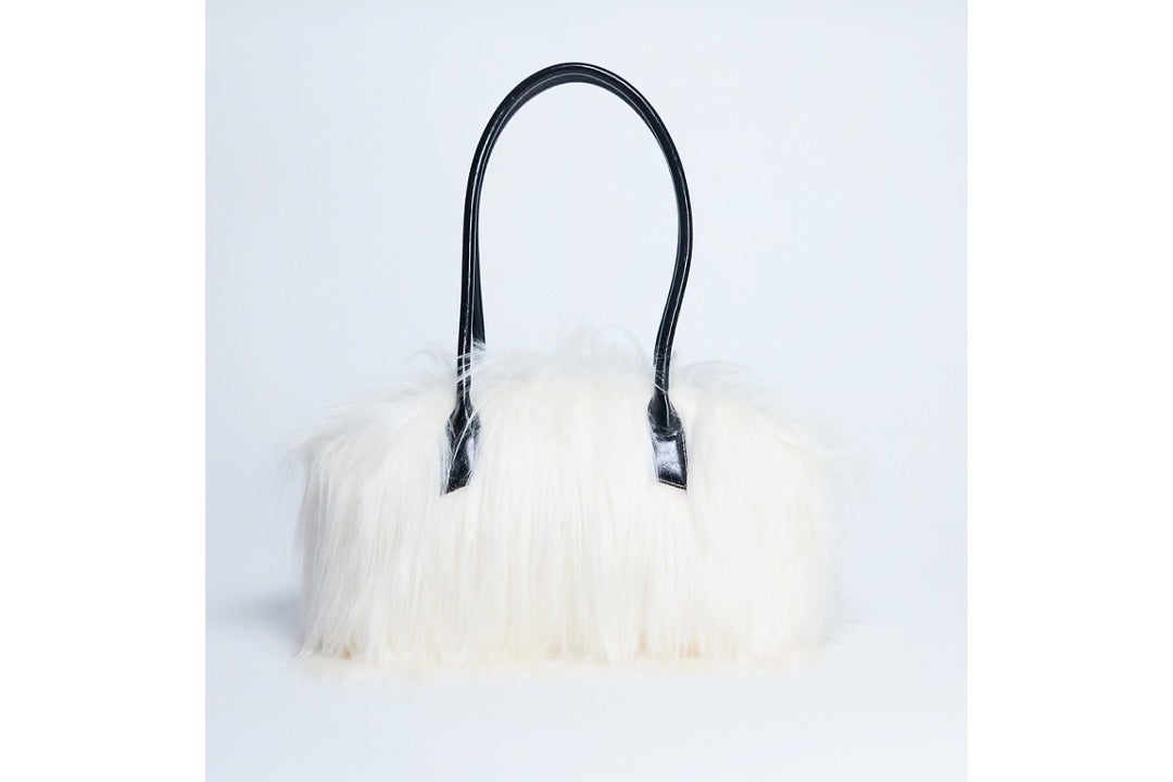 Practical? No. Stylish? Yes. This faux fur bag is a playful take on accessories. The shaggy white finish is contrasted by the twin patent long black shoulder straps. Adding texture to a simple look, it features a press-stud fastening at the top and an internal zip pocket to keep essentials secure. Whatever you do, don’t put it on the tube floor.
