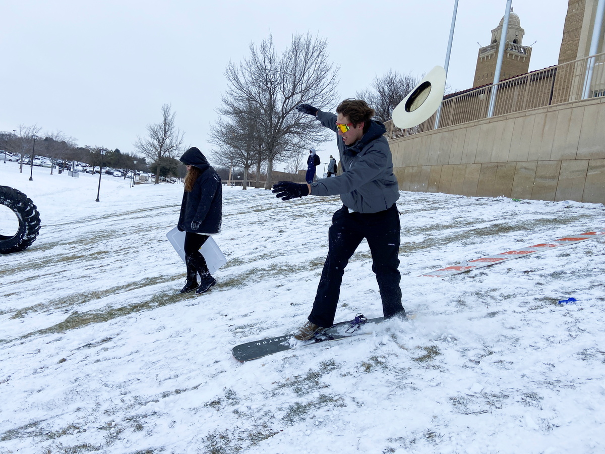 "This is my first time snowboarding out in Lubbock. Trust me, it's not disappointing," Antu said. "There is so much powder out on the ground it feels like it's Colorado almost."