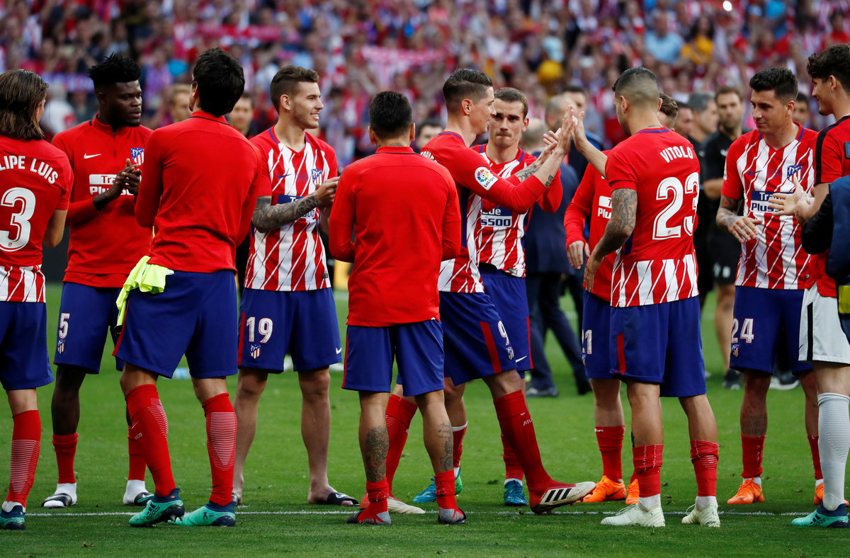 Soccer Football - La Liga Santander - Atletico Madrid vs Eibar - Wanda Metropolitano, Madrid, Spain - May 20, 2018 Atletico Madrid's Fernando Torres with team mates after the match REUTERS/Juan Medina