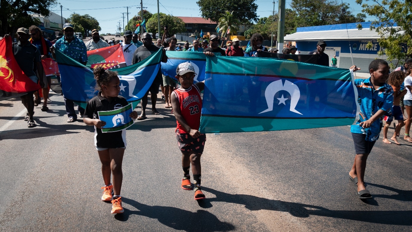 Waiben, also known as Thursday Island, is awash with green, blue, black and white as the local community off the tip of Cape York Peninsula celebrates Torres Strait Islander Flag Day.