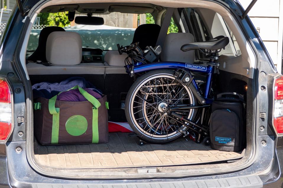 Of course, there’s a method/routine to the folding, and while my teenage son and I had some laughs over how to get the bike folded up at first, and after a couple of tries (and a YouTube video) we could fold and unfold the Brompton in less than 30 seconds.