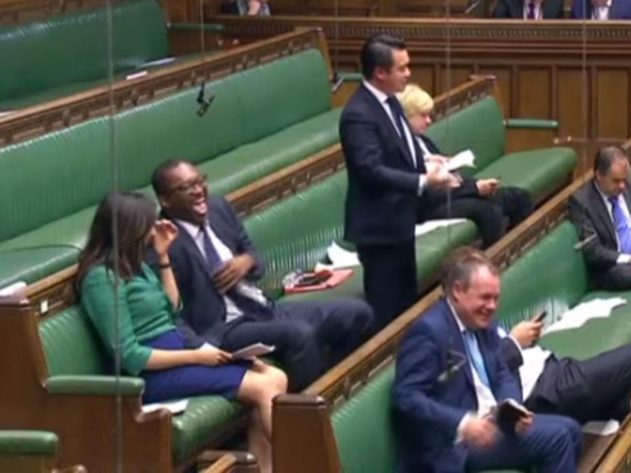 Kwasi Kwarteng, Conservative MP for Spelthorne, has been criticised over his actions during the debate, in which he appears to be sharing a joke with a colleague sat in front of him.