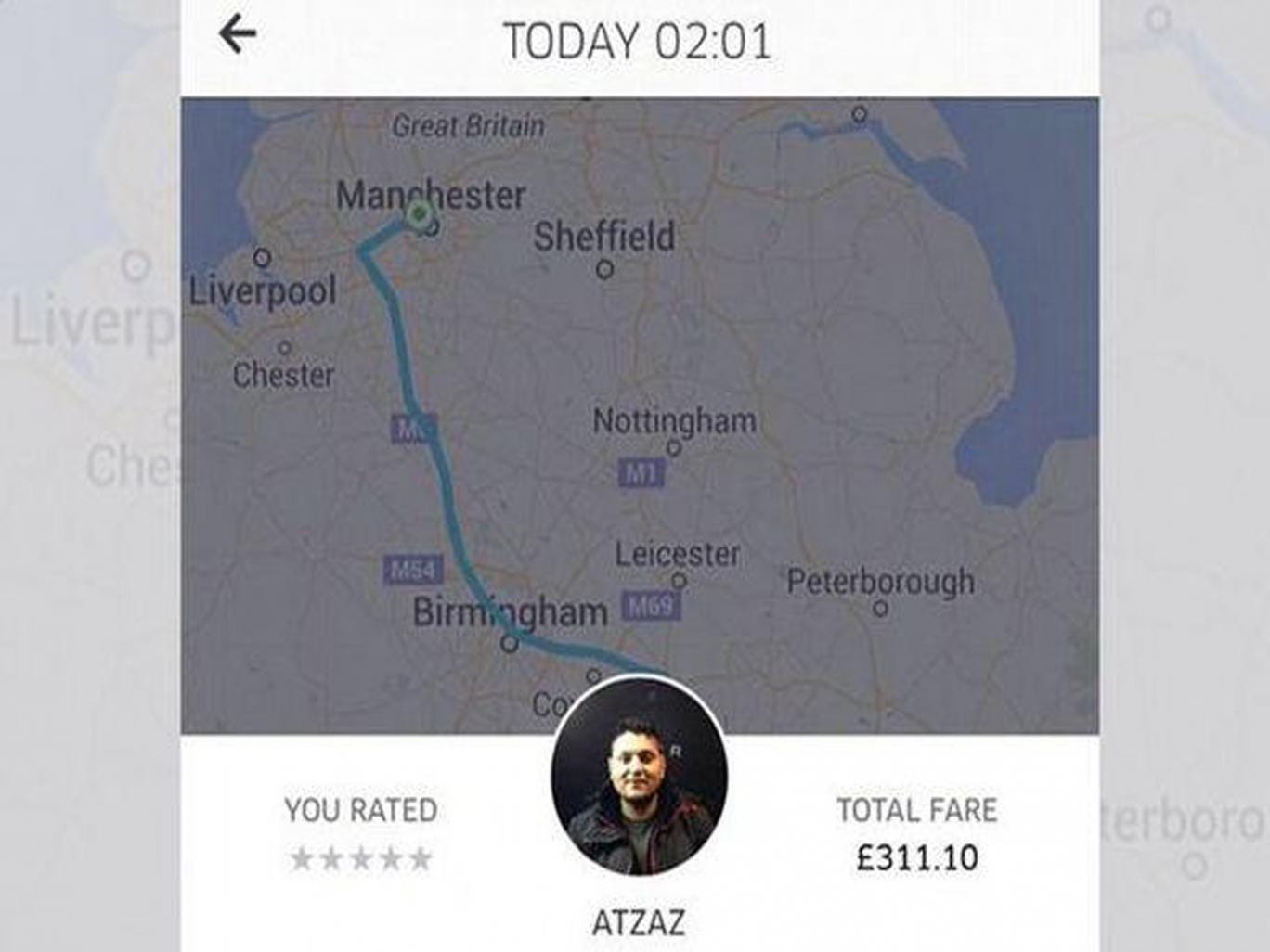 The young man posted a photo of the receipt on Facebook, captioning it: “Went out in Manchester, woke up in London. Checked my emails to see a £311 Uber journey. Must have been an interesting night.”