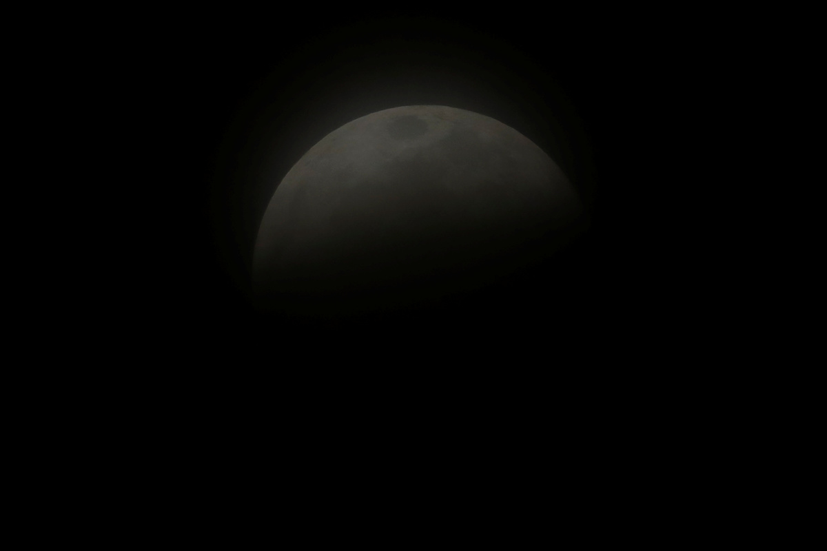 The moon did not vanish entirely during the total eclipse but, at its height, the entire lunar surface was bathed in a reddish-orange glow that gives rise to the "blood moon" description.