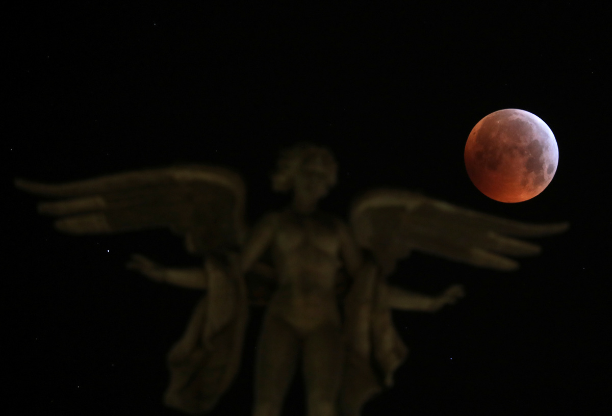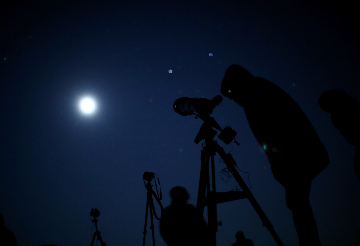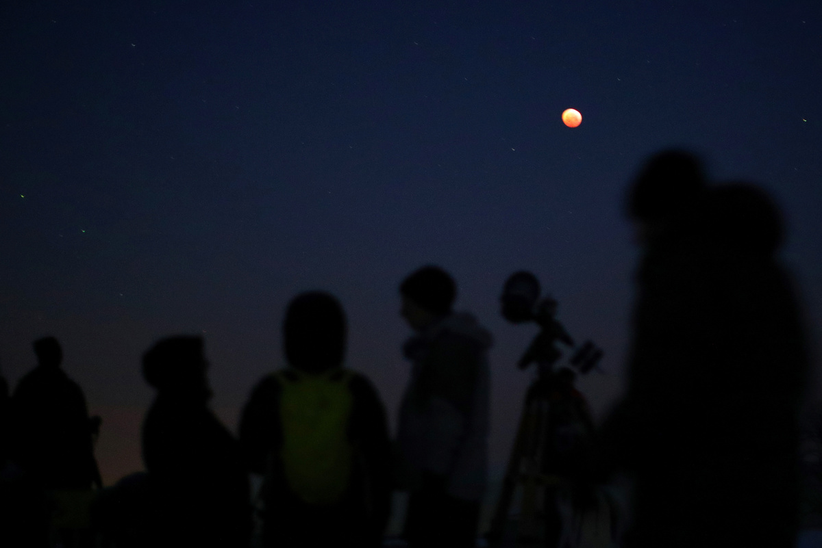 (Reuters) - Skywatchers howled at the moon at the Griffith Observatory in Los Angeles when the full lunar eclipse appeared shortly after 9 p.m. Pacific time on Sunday and our celestial neighbor was bathed reddish-orange during a Super Blood Wolf Moon.